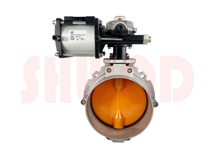 單法蘭氣動粉塵蝶閥專用水泥、粉塵、粉末等物料介質的場合,主要由閥體、密封座、閥板和氣動執行器組成,閥體橡膠密封圈形成的軟性密封,使其特別適用於磨損性強的物料。在需要重力落料或氣力輸送的粉體,顆粒物料處理係統中,單法蘭氣動粉塵蝶閥常常被安裝在料鬥,筒倉,螺旋輸送機出口以及氣送管路上。